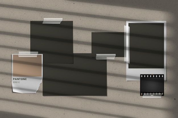 Aesthetic mood board with polaroids and shadows
