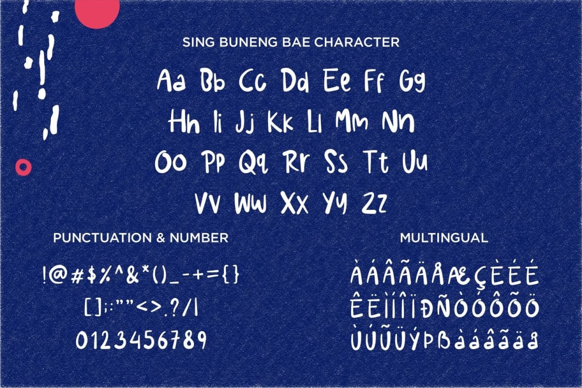 This font includes OTF&TTF&Woff, Sing Buneng Bae also multilingual support.