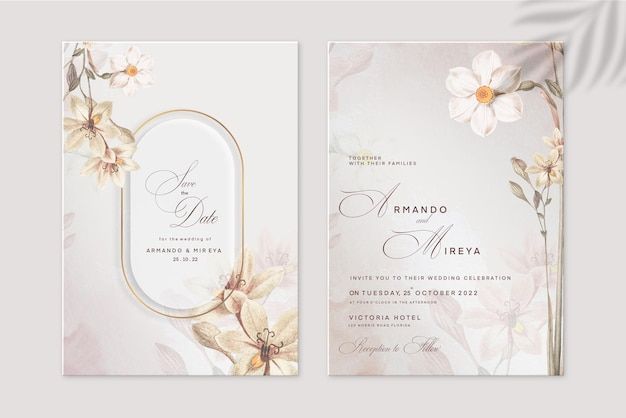 Elegant wedding ceremony typography luxury invitation design with rings line art