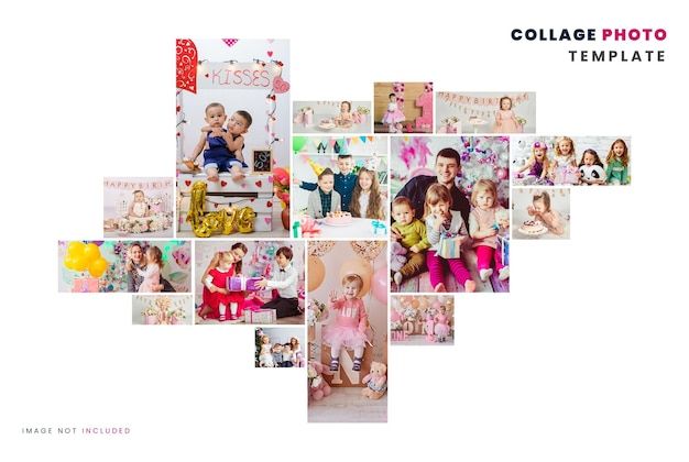 Birthday photo collage frame grid album photo collage in modern style digital photo wall template