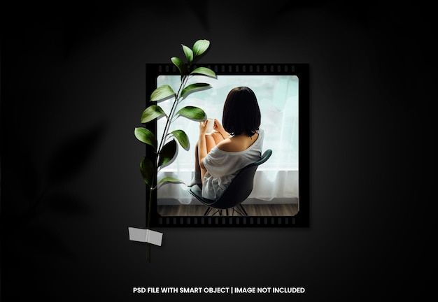Black photo frame polaroid mockup with shadow overlay premium psd