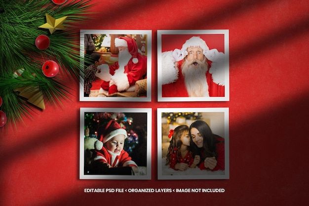 Christmas paper photo frame mockup with torn paper and shadow overlay