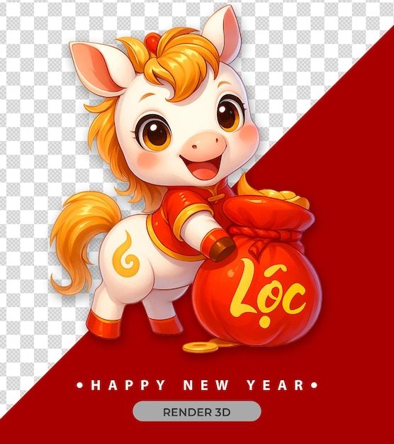 Chữ số 2026 render 3D với ngựa vàng trên nền lễ hội năm mới.