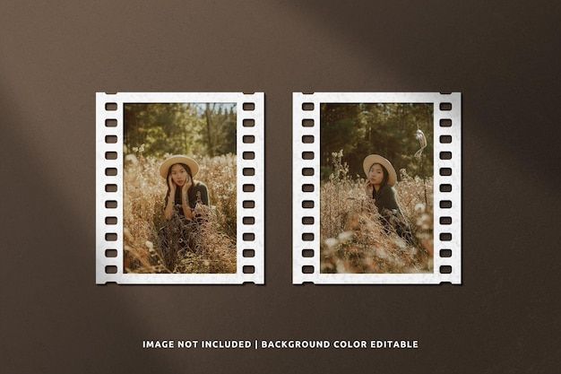 Classic film portrait paper frame mockup with shadow