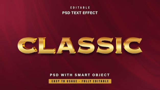Classic gold 3d editable text effect on red background psd