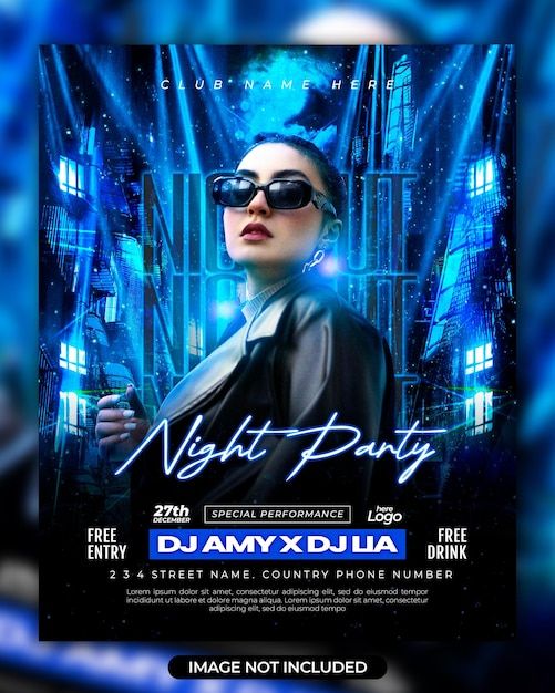 Dj club night party flyer and social media post template