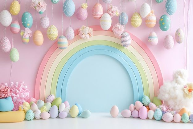 Scandinavian style white interior children’s room, bedroom, nursery. Baby cot with canopy. Wooden shelves and toys. Canopy tent, textile kite and balloons