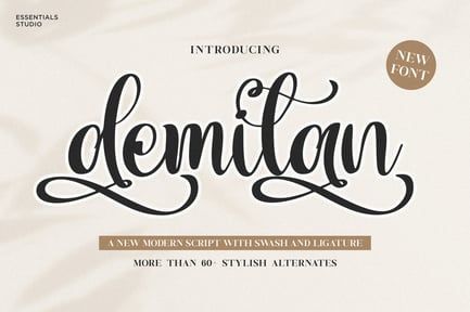 demilan Is a New Modern Script With Swash and Ligature More Than 60+ Stylish Alternate demilan is perfect for product packaging, branding project, megazine, social media, wedding, or just used to express words above the background.