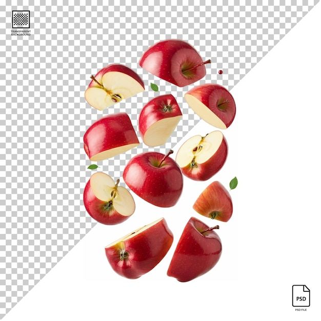 Flying apple parts isolated on transparent background psd