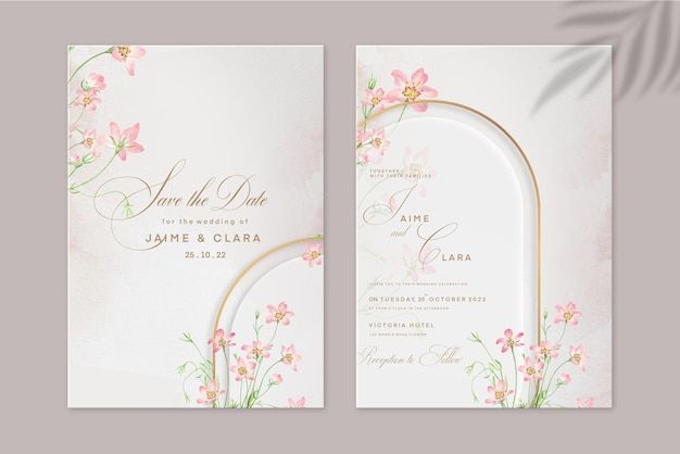 Elegant wedding ceremony typography luxury invitation design with rings line art