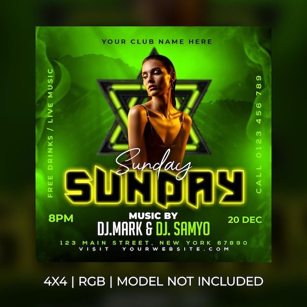 Green neon sunday club party flyer template