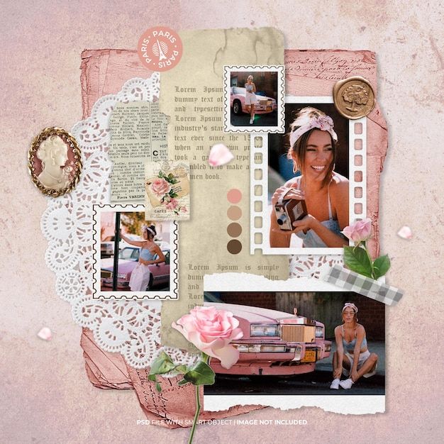 Moodboard photo frame sweet girl vintage mockup