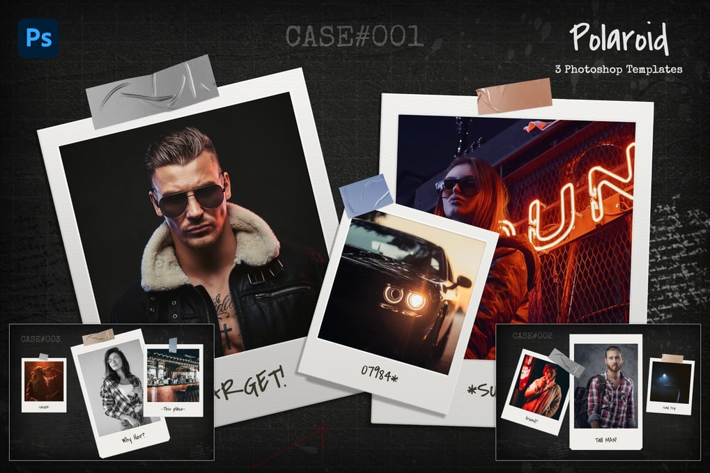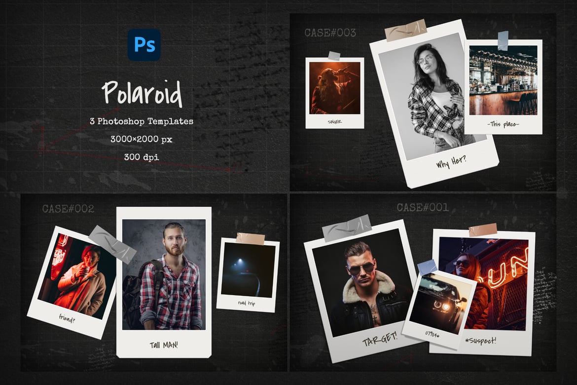 Realistic minimalist and modern moodboard polaroid photo paper frame mockup with shadow overlay