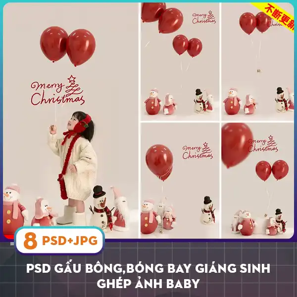 PSD gấu bông,bóng bay giáng sinh ghép ảnh Baby