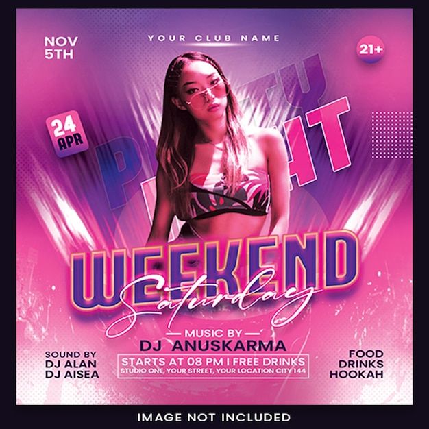 Psd ladies dj party night club flyer social media post template design