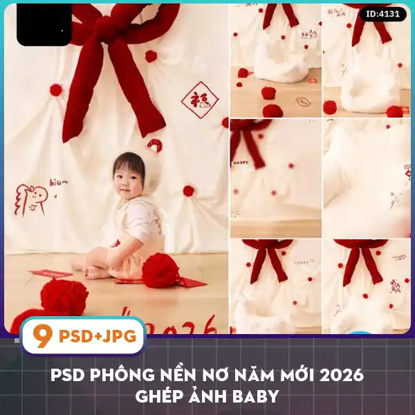 PSD Phông nền Nơ năm mới 2026 ghép ảnh baby