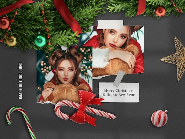 Realistic and minimalist moodboard mockup or paper photo frame mockup for merry christmas and happy new year