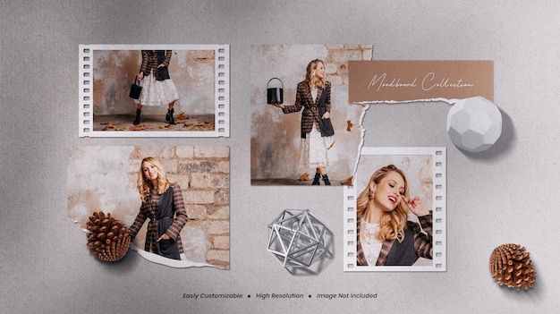 Realistic minimalist and modern moodboard polaroid photo paper frame mockup with shadow overlay