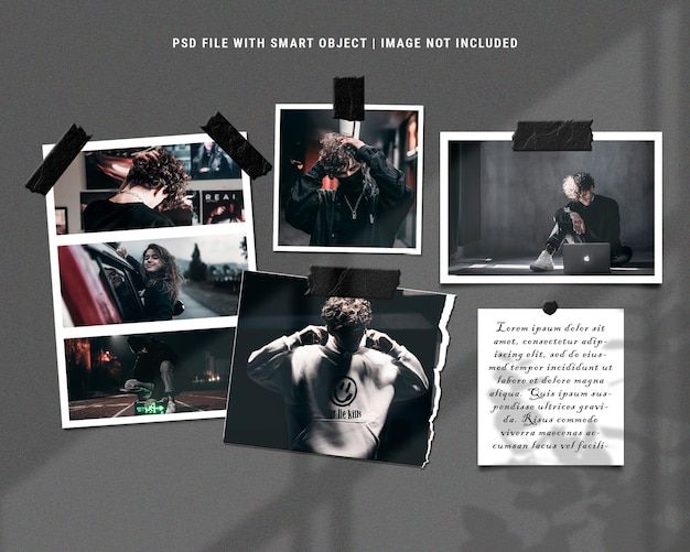 Realistic vintage photo frame set moodboard mockup premium psd premium psd