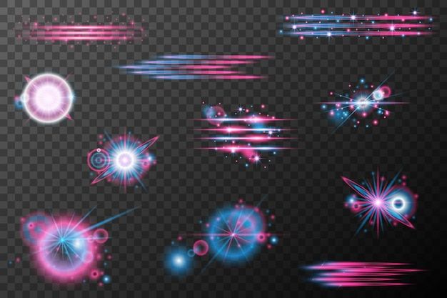 Set light effects pink blue isolated flare explosion shiny dust line solar flare spark star neon light vector effect