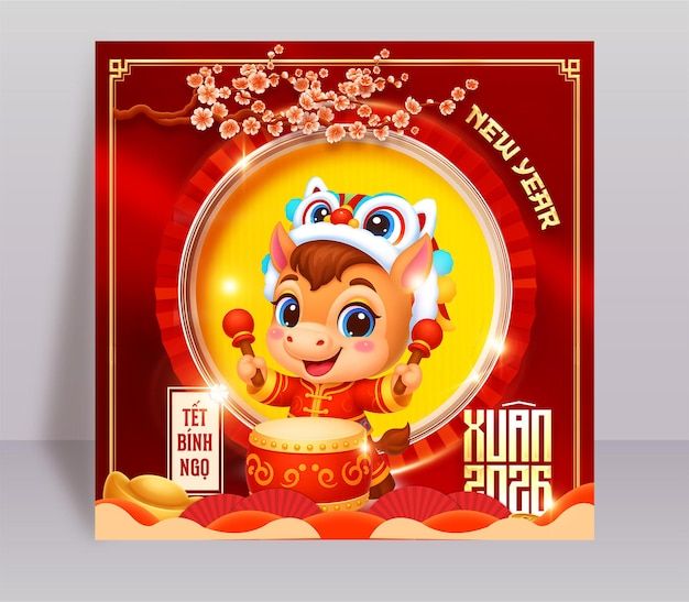 Social media poster template for vietnamese lunar new year tet viet 2026