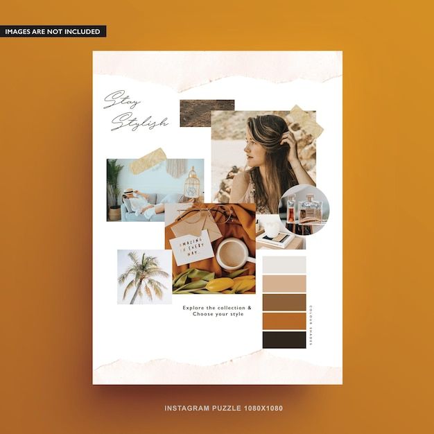 Stylish lifestyle mood board poster with fashion and travel inspiration