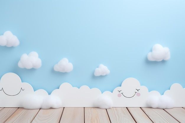 There are clouds that are floating in the sky above a wooden floor generative ai