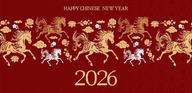 Thiết kế banner Tết Nguyên Đán 2026 – năm Ngựa với biểu tượng hoàng đạo ngựa, tông đỏ và vàng.