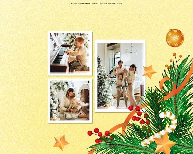 Torn photo frame polaroid template christmas and newyear mockup premium psd