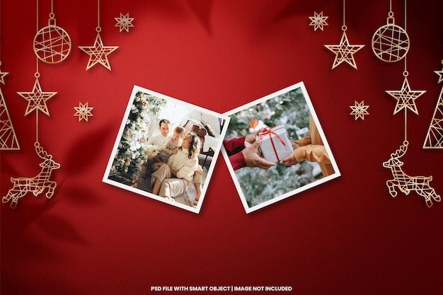 Torn photo frame polaroid template christmas and newyear mockup premium psd