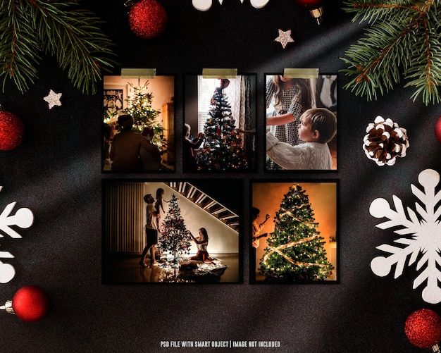 Torn photo frame polaroid template christmas and newyear mockup premium psd