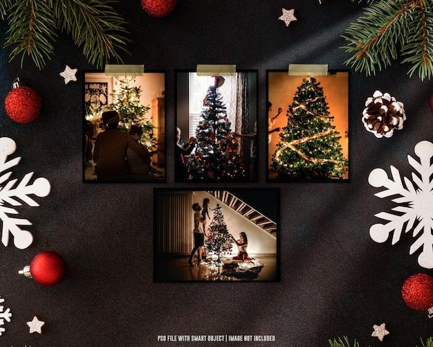 Torn photo frame polaroid template christmas and newyear mockup premium psd