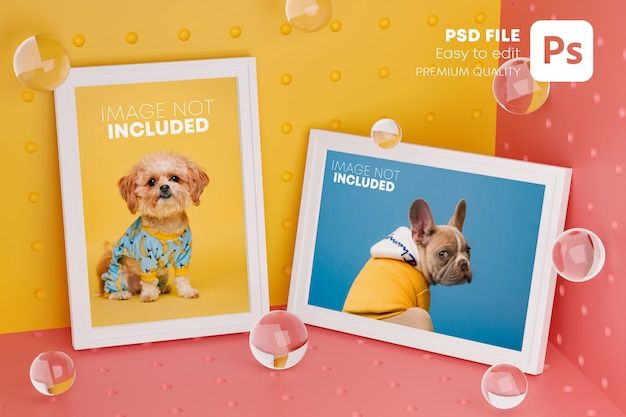 Two frames stylish mock up poster template on corner room.