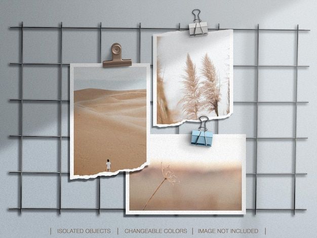 Wall moodboard mockup with torn photo frame