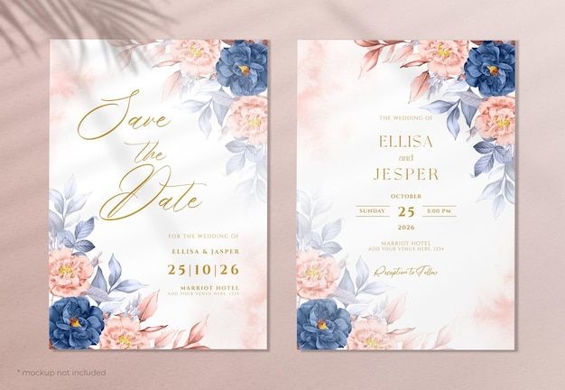 Watercolor floral wedding invitation card set