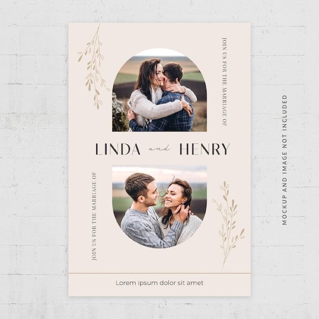 Wedding photo collage flyer vector template