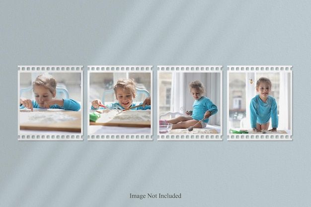 White film strip photo mockup with shadow overlay